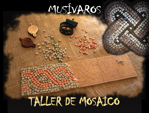 Con esta actividad nos convertiremos en artesanos de un taller musivo de la Hispania Romana, realizando la reproducción de un fragmento de mosaico de forma individual. Sobre un soporte de escayola o madera, el alumno realizará un dibujo con plantilla, que elegirá entre varios modelos. Este dibujo servirá de base para la colocación de las diversas teselas de colores que irán conformando un original mosaico romano.